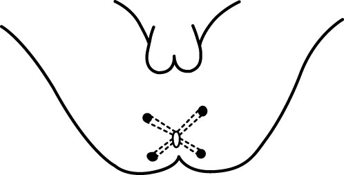 まず尻が腫れて痛がる。おしめを替える時,左右の大きさ,色が違う。おんぶした時やお尻のある部分を触った時,急に泣き出す。赤ちゃんはお尻が痛いとは言わないから,暢気なお母さんはそれに気付かずにお腹が空いたのかとお乳を与えるだけで誤魔化す。注意深いお母さんが異常に早く気付くことが大事だ。此処で早めに切開すれば途端に泣き止んで機嫌が良くなる。生まれたばかりの赤ちゃんにメスを当てることはご両親にとっては大問題だ。意外に出血する。しかし,膿汁が大部分だから心配はない。抗生剤より切開がベターだと思う。ただコツは痔瘻が両側にあることを注意しなければならない。若い両親にとってはお尻の両側にメスを入れることは耐えられない苦痛だろうがとにかく早い方が良い。