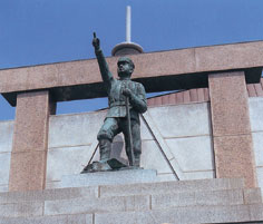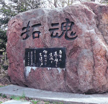 早速中隊本部跡を訪問した(写真2)。昔のままに良く保存されていて,館長さんの厚意で内部を詳しく見せて貰った。私がかつて感動した屯田兵士家族の土間も竈も農機具も,ここ中隊本部の館内に移築し保存されていた。私は懐かしい知人と久し振りにあったような気がした。しかし,残念ながら私はこれらが鉄筋の中でなく,野晒し農地に建っていた姿を見たかった。記念館の周囲には開拓時代の幹回り3m以上のナラ,クヌギ等の巨木の森林を開き,農地を耕す兵士の苦労の姿がセピア色の古い写真やパネルで展示されていた。私はつい屋久島開拓と霧島御池開墾の姿を重ね合わせて思うことだった。庭に出て見ると逞しく若々しい兵士の銅像が建っており(写真3),その脇には凛々しく奮い立つ農耕馬の銅像もあった(写真4)。当時荒地の開墾に馬の力は今のブルドーザー以上に欠かせない大事な存在だったのだ。何よりも互いに温かい血が通っていたことだろう。「拓魂」と記銘した誠に大きな自然石碑もあった(写真5)。当時の人たちの気合が伝わってきた。