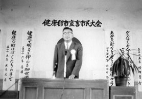 見事市長に当選し,昭和39年5月の市議会で,健康都市宣言が決議され,6月には健康都市宣言市民大会が,1,200人の市民の熱気の中で盛大に行われた時の昂揚感は忘れられない(写真9)。