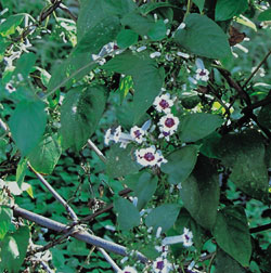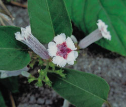 また,大きなグミ木があって提灯型をした赤い小さな実をいっぱい吊るしていたし,ビワの実も黄色く美味しかった。ヘクソカズラの花を鼻の頭にのせて天狗の真似をしたりしたものだった(写真1,2)。同じ頃に周囲の広い竹藪で,竹の子を取って竹の子御飯を御馳走になったことを思い出す。