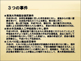 終末期医療を考える際,忘れてはならない3つの事件があります。
