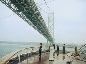 写真 8 船上(飛鳥U号)から見上げる明石海峡大橋