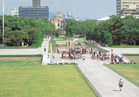写真 1 原爆資料館より見た慰霊碑とドーム