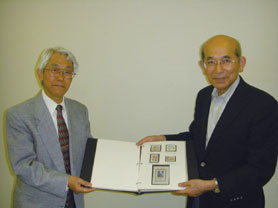 鹿児島市医報『随筆・その他』のコーナーにて,通巻459号(平成12年5月発行)から現在も連載中の「切手が語る医学」著者でいらっしゃる城山支部古庄弘典先生から鹿島会長へシリーズ1回目から122回目までの原稿(切手原本)の寄贈式が行われた。