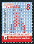 シート地:男子に注射する医師とアフリカ地図を配する血液の滴とマラリア媒介ステフェンスハマダラカ