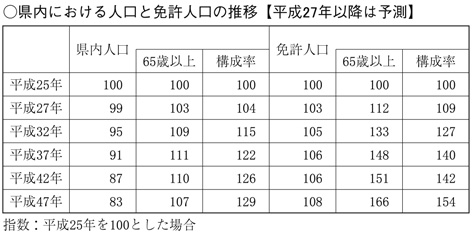 また,県警察の調査では,高齢ドライバーも約1.7倍に増加し,免許を保有する3人に1人は,65歳以上という時代がすぐ目の前に迫ってきている現状にあります。