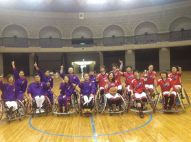 三つ目は車椅子バスケットボール(椅子バス)です。コート上の格闘技とも呼ばれるこの競技はパラリンピックや映画,漫画にも取り上げられるなど最近注目を集めています。椅子バスは1950年代頃にグッドマン博士により脊髄損傷患者のリハビリテーションの一環として始まりました。現在は競技性が重要視されるようになり競技スポーツとして全国各地で盛んに行われています。馴染みのない方にとっては,障がい者スポーツというイメージが当然あるかと思いますが,現在は健常者でも競技人口が増加しています。椅子バスの魅力は,その迫力や競技性はもちろんのこと,障がいの有無に関係なく同じ土俵で真剣勝負ができるという点にもあると私は思います。鹿児島県においても,現在,障がい者チーム2チームと健常者チーム1チームが活動しており,レベルアップを図るために切磋琢磨しています。