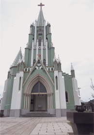 平戸は人口3万2千の小さな港町だが歴史的には面白い所で,タクシーで一回り観光することにした。徳川家康の外交相談役を勤めた英人ウィリアム・アダムス(三浦按針)が,1564年この地で没して墓もある。フランシスコ・ザビエルはマラッカで薩摩人のヤジロウと知り合い,彼を伴って日本を目指し,まず薩摩の坊津に上陸,1549年8月に現在の鹿児島市祗園之洲に来着した。守護大名・島津貴久に謁見しキリスト教布教の許可を得たが,仏僧と対立して1550年8月には平戸に移動した。その後,山口,大分で布教活動して2年間日本に滞在した後,インドのゴアに移った。1971年(昭和46年)9月に平戸市内の丘に平戸ザビエル記念教会(写真1)が建てられ,手前に光明寺,瑞雲寺があるので「寺院と教会の見える風景」として知られている。教会は大きくはないが形といいモスグリーンの色彩といい非常に美しく,敷地内には純白のザビエル像があった。