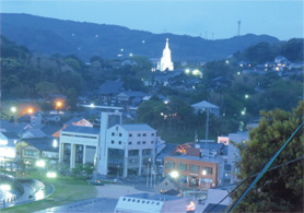 往路は路線バスで2時間も掛かり閉口したので,復路はタクシーで佐世保に向かい,真っ赤な平戸大橋(写真7)を渡って街を離れ,1時間ほどで佐世保の弓張岳(353m)に建つ弓張の丘ホテル(写真8)に着いた。佐世保は人口25万5千の中都市であるが,日露戦争の時,東郷司令長官率いる連合艦隊が,ここから出撃してバルチック艦隊を殱滅したので有名だ。横須賀,呉と並んで軍都であるが,昭和20年6月に140機のB29の爆撃を受け焦土と化した。現在は海上自衛隊と米海軍の基地となっている。