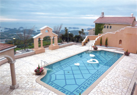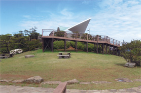 弓張の丘ホテルからの眺めもいいが,すぐ近くに公園化した展望台があり,弓を張ったような三角形の屋根があるので弓張岳展望台という(写真12)。第一展望台からは佐世保市街地と港が(写真13),第二展望台からは九十九島の絶景(写真14)が楽しめる。広場には歌碑が数カ所あり,有名なのは“七つの子”,“赤い靴”の野口雨情の「弓張岳は弦なし矢なし ただ空見てる 梯子をかけてお天道さんに 矢と弦をもらえ」と彫られた歌碑があった。