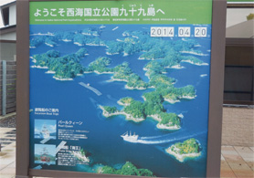 ホテルで少し休憩したあと,ここでのメインである九十九島観光に出掛けた。食べ物では佐世保バーガーが有名で23種類もあるが,美味しいので行列ができるというお店に予約していたのを受け取って,パールシーリゾートに移動した。ここには水族館もあり日曜日なので,観光客や子ども達が多くごった返していた。観光船は純白の「パールクイン」と赤色の「海賊船 海王」の2種あるが前者を選んだ(写真9)。この海域には名前のついた島だけでも二十数島あり,大きな島には人も住んでいて牡蠣の養殖も行われている。小さな岩礁には釣り人が糸を垂れたりしていた。昼食代わりに佐世保バーガーを食べながら約1時間のクルージングで,仙台の松島に劣らない絶景を楽しんだ(写真10,11)。