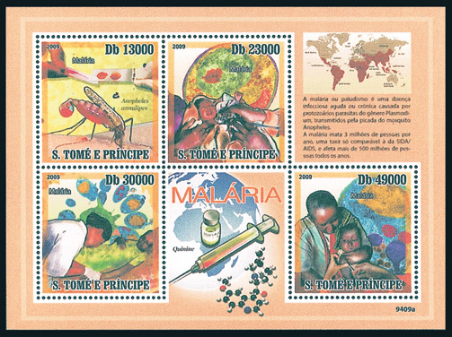 マラリア連刷シート(切手4種・タブ2種)