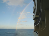 写真は,ダイヤモンドヘッド登山中に見た朝焼けと,ホテルからたまたま見えた虹を載せております。縁起よし!
