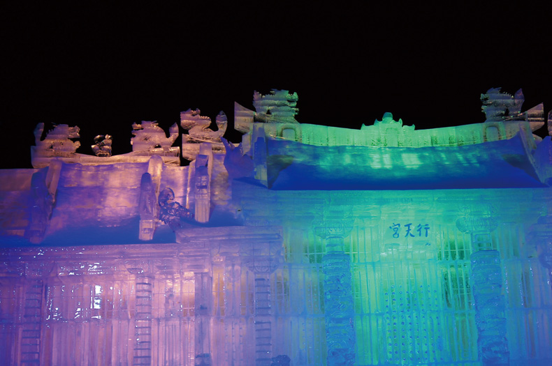 ライトアップされた氷の寺院(さっぽろ雪まつりにて)
