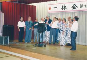 一方,先生は会員福祉にも心を配られました。会員,職員,家族,看護学生参加の市医師会大運動会は支部対抗形式で行われ,楽しみながら競い合い団結力を強めるという伝統的な一大行事でした。支部ごとの堂々の?入場行進に始まり,競争心をあおられながらも和気あいあいの競技,昼休憩時間には,多くの場合支部長が用意したお弁当開きと語らい,閉会式での成績発表と表彰,とくに15支部の中で会員参加率が最も高い支部への団結賞は支部の勲章ともいえる自慢の賞でした。開会式で入場行進に答礼される先生,閉会式で賞状を授与され,労いの気持ちを表される壇上の先生の姿が瞼に浮んでまいります。医師会職員諸氏には会場設営,競技運営,整理とご苦労の多いことでしたが,お蔭で医師会の一体感を共有できました。
