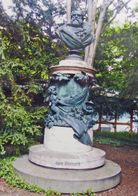 ヴュルツブルグ中央駅近くには,レントゲン記念館があり,駅の東方には,シーボルト通りや彼が学んだヴュルツブルグ大学があった。また,その近くの小さな環状公園の中には,シーボルトの胸像があった(写真2)。像の台座の裏側には,ドイツ語で「Dein Erforscher Japans」と刻まれていた。