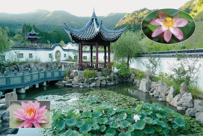 晩夏の頃だったか中国風の意匠をあしらった冠岳花川砂防公園を訪れたとき足を踏み入れた蓮池に多くの蓮が今を盛りと開花していた。冠岳の美しい峰々や物見台である望嶽亭を背景にした蓮池と今を盛りの蓮の花に思わずシャッターを切った一コマだった。風景に満開の蓮をアップしてみた。