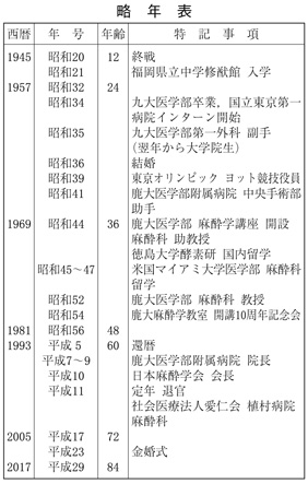 昭和41年大きな転機が訪れた。私が入局する1年前,米国留学から帰国して一外科で麻酔の指導をしておられた吉武潤一先生が鹿児島大学に麻酔科を創設すべく,その前身として中央手術部助教授として赴任されることになった。実はそれまで私は先生から直接麻酔の指導を受けており,先生の麻酔学に対する理念とお人柄には深く傾倒していた。麻酔を外科手術のための方便として,ともすれば麻酔技術に偏重しがちな当時一般の風潮とは明らかに一線を画し,あくまでも学問としての麻酔を追及される先生の姿勢を私は身近に感じていたのである。そして,まだ6年の外科経験しかない私はまだ外科に未練はあったが,吉武先生から,“鹿児島へ一緒に来ないか”というお誘いを受けた時,私の心は大きく揺れた。そして,“先生には大変お世話になりましたから,2,3年くらいなら教室づくりをお手伝いしましょうか”と答えた私に先生はこう言われた。“一生麻酔をやる気がないのなら来なくてもいい,将来教授を目指すくらいの覚悟があれば来い”と。この言葉で私の心は決まった。今にして思えば当時の猫の手も借りたい程の人手不足の時期に,あれだけのことが言える先生の器の大きさが伝わってきて,この人ならばどこまでもついていこうと決めた。昭和44年1月吉武潤一教授によって鹿児島大学医学部麻酔学教室が開設され,それまで3年間手術部での限定された麻酔から本格的な講座主体の麻酔システムへ移行した。この時期に教授のお許しを得て,半年という短期間ではあったが,徳島大学医学部酵素研究所の勝沼信彦教授の下で酵素化学の勉強をさせていただくことになった。この間,勝沼教授および教授の弟さんの恒彦先生からいただいた研究者としての心構えの言葉は,その後ずっと私の脳裏に焼き付いている。いわく,“将来大を成す者は必ずや明るくて爽やかでなければならない”とか“現時点で何を最優先すべきかをいつも考えること”等々。ただちょうどその頃,全国的に燃え上がった学園紛争は徳大でも激化して,予定より早く鹿児島に帰ることになったのは残念であった。