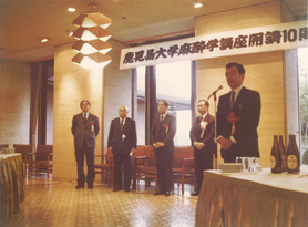昭和54年麻酔学教室開講10周年記念会には,大変光栄なことに三宅先生,古川先生,吉武先生お揃いで出席してくださり,教室の発展を共に祝ってくださった(写真4)。数年後に不幸にして起こった医療事故は,管理責任者としての私の不徳の致すところとして誠に申し訳なく思っている,その折,学内では第三内科の井形昭弘教授,学外から熊本大学麻酔科の森岡