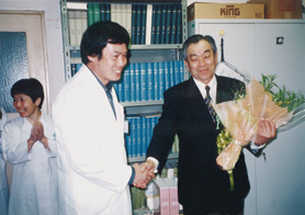 平成5年還暦を迎えたが,それからの数年は病院長や日本麻酔学会長等を務め(写真5,6),小田助教授をはじめ教室員全員に支えられて,多忙ではあったが悔いなく仕事を全うした。定年退官の日,感謝の気持ち一杯で教室を後にした(写真7)。