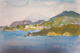 7年前から趣味というほどの代物ではないが,ふとしたご縁で「75歳の手習い」として水彩画を習い始めた。一向に上達の気配はないが,これまでとは違った非日常的な時間の使い方を覚えて楽しんでいる。10月末,修猷館無線部OB会で西伊豆を訪れた時の作品を添える(写真9)。