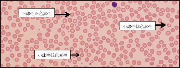 図1 末梢血液像:RBC形態は大小不同1+あり,多染性1+