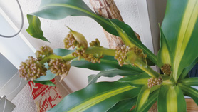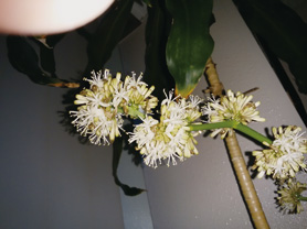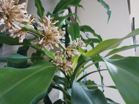 31年前開業祝いにいただいた幸福の木に花が咲いた。今回で4回目である。幸福の木とは観葉植物ドラセナのことである。滅多に花は咲かない。
