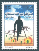 片足を失い杖で歩く人,地中の地雷とその爆発