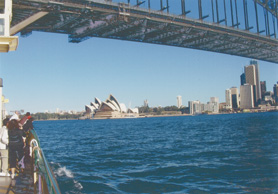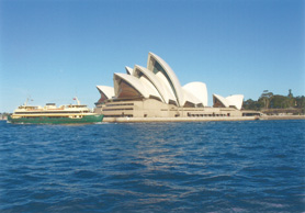 シドニーは平成18年8月に訪問したが,巨大なブリッジと,世界遺産の帆のような奇妙な形のミュージック・ホールに行き交う船がマッチして,何時まで眺めていても飽きが来ないという文句なしに美しかった。対岸に渡るのには連絡船の往復が一般的であるが,ブリッジを車でいったり,観光用に命綱を付けて,旗がひらめくブリッジのアーチ部分を歩くのもある(写真2,3,4,5)。