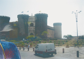 ナポリは昭和56年5月と平成15年7月の2回訪問している。ナポリは11世紀初頭ノルマン人が征服してデローヴォ城を建てた。この城には魔法をかけた卵を城内に埋め,これが割れるとナポリに災いが起こるという伝説があり通称・卵城と呼ばれている。その後,スペインのハプスブルク家やフランスのブルボン家の支配を受け,支配者が代る度に城や宮殿が築かれ,今ではそれらが重要な観光資源になっている。海岸通り及びカプリ島行きの船からの遠望では,背後にヴェスヴィオ山を控え,港の街並みが展開して見えた(写真6,7)。港に行ってみると古めかしい卵城が突き出ていたり,ヌオーヴォ城があったりで趣がある(写真8,9)。しかし港の全体像はヴォメロの丘のような少し高い所からの眺望でないと分からない気がしたが,残念ながらその機会が無かった。